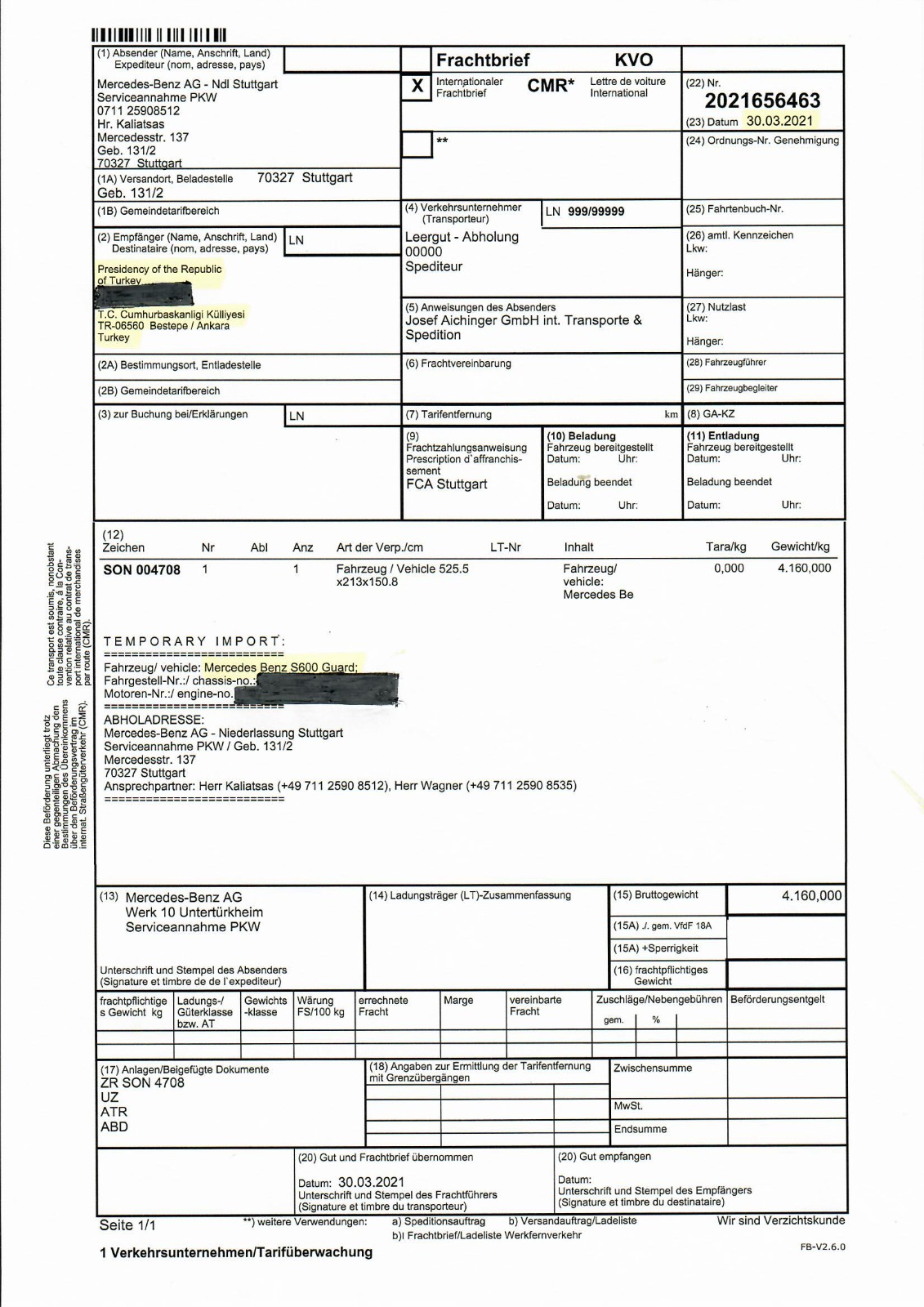 "Bu da Cumhurbaşkanlığı için temin edilen ikinci Mercedes'in bilgileri