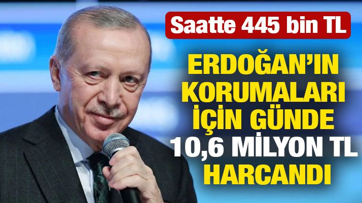 Bu açıklamaya göre Erdoğan’ın koruma ordusunun günlük harcaması 10 milyon 677 bin TL’ye, saatlik harcaması ise yaklaşık 445 bin TL’ye denk geliyor.