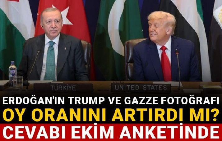 Özkök'ün paylaştığı anket firması olan PanoramaTR Araştırma Şirketi, Erdoğan'ın Beyaz Saray'da ABD Başkanı Donald Trump ile verdiği fotoğraf ve Mısır'da düzenlenen Gazze zirvesinde verdiği görüntünün ardından AKP'nin oy oranını yüzde 0,1 puan artırdığını kaydetti.