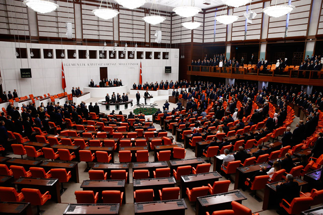 Erdoğan Meclis salonuna girdiğinde AKP, İYİ Parti ve MHP'li vekiller ayağa kalkarken CHP ve HDP'li vekiller ayağa kalkmadı.