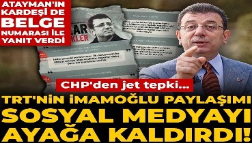 TRT'nin İmamoğlu paylaşımı sosyal medyayı ayağa kaldırdı! CHP'den jet tepki... Atayman'ın kardeşinden de belge no'lu yanıt
