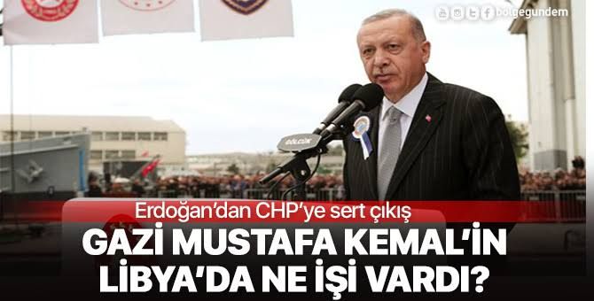 Denizaltı Projesi 1'inci töreninde konuşan Erdoğan,konuşmasında, "Libya'da ne işimiz var?" diyen CHP'ye "Gazi Mustafa Kemal'in Libya'da ne işi vardı?" dedi.
