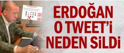 Cumhurbaşkanı Erdoğan'ın tweetini silmesi Çin basınında da ilgi gördü.