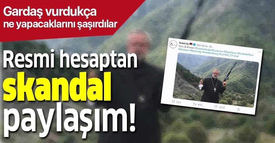 Ermenistan'ın resmi onaylı Twitter hesabından kışkırtıcı ve provokasyon kokan bir fotoğraf paylaşıldı. "İnanç ve güç" notuyla paylaşılan bu fotoğrafta elinde silah tutan bir Papaz görülüyor.