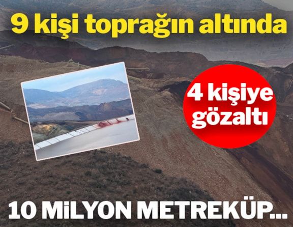 2010 yılı Aralık ayından beri altın üretimi yaptığı Çöpler Maden Sahası'nda çıkarılıp istiflenen toprak, dün saat 14.28'de kaydı. 9 işçi toprak altında kaldı. İçişleri Bakanı Ali Yerlikaya, Erzincan'daki altın madenine gelerek bölgede incelemelerde bulundu. Soruşturmayla ilgili saha sorumlusunun da aralarında bulunduğu 4 kişi gözaltına alındı.