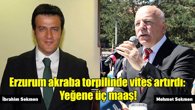 Erzurum Büyükşehir Belediye Başkanı Mehmet Sekmen’in yeğeni olan İbrahim Sekmen, belediyenin Kaynak Geliştirme ve İştirakler Daire Başkanı olarak görev yapıyor. Belediyenin iştiraki olan Palandöken Yatırım A.Ş.’nin Yönetim Kurulu Başkanvekili olan İbrahim Sekmen, aynı zamanda bu şirketin Genel Müdürü.