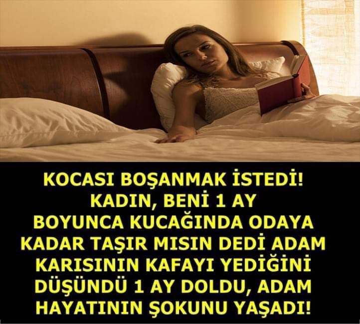 Elini tuttum ve ona söyleyeceğim şeyler olduğunu söyledim. Masaya oturdu ve sessizce yemeğini yemeye başladı. Ve yine gözlerinde o korkuyu gördüm. Bir anda kasıldım, ağzımı açamıyordum ama düşüncelerimi söylemem lazımdı. Ben boşanmak istiyorum. Sinirlenmedi, sözlerime karşılık vermedi, sadece sebebini sordu. Bir cevap veremedim ve buna çok sinirlendi. Elindeki çatal bıçakları fırlattı. Bana bağırdı ve adam olmadığımı söyledi. O akşam tek kelime konuşmadık. Eşim bütün gece ağladı. Farkındaydım evliliğimize ne olacağını merak ediyordu, ama onu tatmin edecek bir şey söyleyemeyecektim. Ben Jane'e aşık oldum, eşimi sevmiyorum artık. Bu vicdan azabıyla bir evlilik sözleşmesi hazırladım; evi, arabayı ve şirketin %30'unu ona verecektim. Sözleşmeye kısa bir süre baktı ve yırttı. 10 yıl hayatımı paylaştığım bu kadın bana yabancı olmuştu. Onun harcadığı zamana ve enerjiye üzülüyordum ama geri dönemezdim, Jane'e çok aşık olmuştum. Sonra hıçkıra hıçkıra ağlamaya başladı, bu beklediğim bir tepkiydi. Onun ağlaması benim hafiflememe sebep olmuştu. Bir süredir aklımdan geçiriyordum boşanmayı, bu fikir bende saplantı haline gelmişti; şimdi bu duyguyu daha da güçlü hissediyordum ve doğru karardı. Bir sonraki akşam eve geç gelmiştim ve eşimi masada yazı yazarken gördüm. Çok uykum vardı ve akşam yemeğini yemeden uyumaya gittim. Jane ile geçirdiğim o kadar saat beni yormuştu. Bir ara uyandım ve onu hala yazı yazarken gördüm masada. Ama bu benim umurumda değildi ve başımı çevirip uyumaya devam ettim... Ertesi sabah bana şartlarını yazı halinde sundu. Benden hiçbir şey istemiyordu, sadece boşanmamızı ilan etmek için bir ay müsaade istedi ve bu zamanda normal bir aile gibi davranmamızı istedi. Bunun sebebi oğlumuzun bir ay sonra sınavlarının olması ve bu dönemde ona bu yükü bindirmemekti. Bu kabul edilebilirdi. Bir şey daha vardı, benden onu evlilik gecesinde nasıl kapıdan içeriye taşıdığımı hatırlamaktı, ve 1 ay boyunca her sabah onu yatak odasında kapıya kadar taşımamı istedi. Kafayı yediğini düşündüm, ama son günlerimizin iyi geçmesi acısından kabul ettim. Sonra bu şartlardan Jane'e bahsettim, yüksek sesle gülüp bunun çok saçma olduğunu ve eninde sonunda boşanmayı kabul etmek zorunda kalacağını söyledi. Eşimle boşanma konusunu açtığımdan beri fiziksel temasta bulunmadık. Bu sebepten ilk gün onu kucağıma alıp kapıya götürdüğümde tuhaf bir duygu yaşadım. Oğlumuz arkamızda duruyordu ve alkış yapmaya başladı. 'Babam annemi kucağında taşıyor' dedi. Bu onu çok sevindirmişti, sözleri canımı acıtmıştı... Yatak odasından evin kapısına kadar 10 metre taşıdım. Eşim gözlerini kapattı ve kulağıma "Oğlumuza boşanmamızdan bahsetme," diye fısıldadı. Ben de başımı öne eğerek tamam, dedim ve içime bir üzüntü çöktü. Kapı önünde onu bıraktım, eşim otobüs durağına gitti ve onu işe götürecek olan otobüsü bekledi. Ben de tek başıma ofise gittim. 2. gün bu oyunu oynamak bize daha kolay gelmişti. Eşim başını göğsüme yasladı ve onun kokusunu duydum. Birden eşime uzun süredir bakmadığımı anladım ve onun evlendiğim zamanki kadar genç olmadığını fark ettim. Yüzünde hafif çizgiler oluşmuş, saçlarına ak düşmüştü. Geçen yıllar öylesine yanından geçmemişti, o an kendime ona bununla neler yaptığımı sordum. 4. gün onu kucağıma aldığımda bir güven duygusu yaşadım. Bu, bana hayatının 10 yılını hediye eden kadındı.5. gün bu güven duygusu daha da büyümüştü. Bundan Jane'e bahsetmedim. Günler geçtikçe onu taşımak daha da kolaylaşmıştı, belki de bu sayede yaptığım antrenmandan dolayıdır bu. Bir sabah onu ne giyeceğini düşünürken izledim. İsyan ederek her gün kıyafetlerin biraz daha bol geldiğini söyledi. Birden onun ne kadar süzüldüğünü ve kilo verdiğini fark ettim. Demek ki onu her sabah daha kolay taşıyabilmemin sebebi buydu. Birden yüzüme yumruk gibi vurdu. Bu kadar acıyı ve üzüntüyü kalbinde taşıyordu. Farkında olmadan başını okşadım. O an oğlumuz da geldi ve "Baba, annemi taşıman lazım." dedi. Bu hayatımızın bir parçası olmuştu, babasının annesini odadan kapıya taşıması. Eşim oğlumuzu yanına çağırdı ve ona sıkı sıkı sarıldı. Ben başımı çevirdim, son anda kararımdan vazgeçmek istemiyordum. Onu kucağıma aldım ve yatak odasından kapıya kadar taşıdım. Elini enseme koymuştu ve ben onu sıkı sıkı tutmuştum. Tıpkı evlendiğimiz gün gibi. Artık huzursuzlaşmıştım bu kadar kilo vermesinden. Son gün onu kucağımda taşıdığımda hareket etmedim. Oğlumuz okuldaydı ve eşime hayatımızdaki yakınlığın ne kadar eksildiğini söyledim. Ofise gittim ve kapıyı kilitlemeden arabadan fırladım, bunun için zaman yoktu. Her anın kararımı değiştirmesinden korkuyordum ve merdivenden yukarı koştum, yukarı varınca Jane kapıyı açtı. Ona karımdan boşanmayacağımı söyledim. Şaşkın bir ifadeyle elini alnıma koydu ve 'Senin ateşin mi var?' diye sordu. "Üzgünüm Jane ama ben artık boşanmak istemiyorum." dedim. Evliliğimizin renksiz kalması sevgi eksikliğinden değil, birbirimizin değerini unuttuğumuzdandı. Şimdi aklıma geldi ona evlendiğimiz gün kapıdan içeri taşıyınca ömrümün sonuna kadar sadakat yemini verdiğim... Jane olayı anlayınca yüzüme bir tokat attı ve kapıyı kapatarak ağlamaya başladı. Hemen aşağı koşup ilk çiçekçiye gidip eşime bir buket çiçek aldım, üzerindeki karta da ''Seni her sabah hayatımın sonuna kadar taşıyacağım." yazdım. Eve vardığımda yüzümü bir gülümseme kapladı, elimde çiçeklerle yatak odasına gittim ve eşimi yatağın üstünde ölü buldum. Eşim aylardır kanser ile savaşıyordu ve ben Jane 