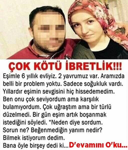 Bana söylediği şey Bilmiyorum” dedi. “İçimde mana veremediğim bir soğukluk var sanki. Isınamıyorum bir türlü” Tamam dedim ve o gün boşanmaya karar verdik. Sonra düşününce bunun şeytandan olabileceği aklıma geldi. Tanrı Rasulü (Sallallâhu aleyhi ve sellem) Bakara suresi okunan eve şeytanın giremeyeceğini haber vermişti.