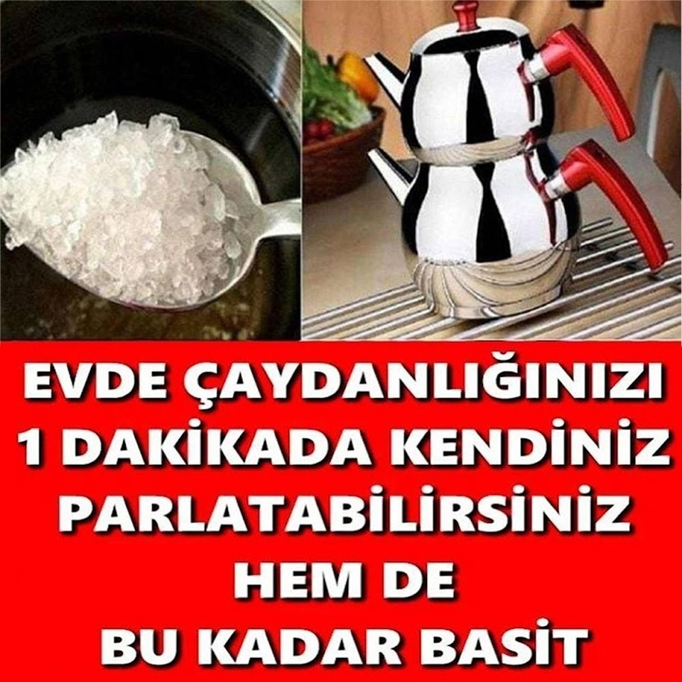 Evde en çok kullandığımız çaydanlıklarımız içerisinde çay ve su bıraktığımızda malesef iç kısımlarında sararma ve kireçlenme yaparlar. Aynı şekilde dış kısımları da su da kireç nedeniyle parlaklıklığını yitirirler.
