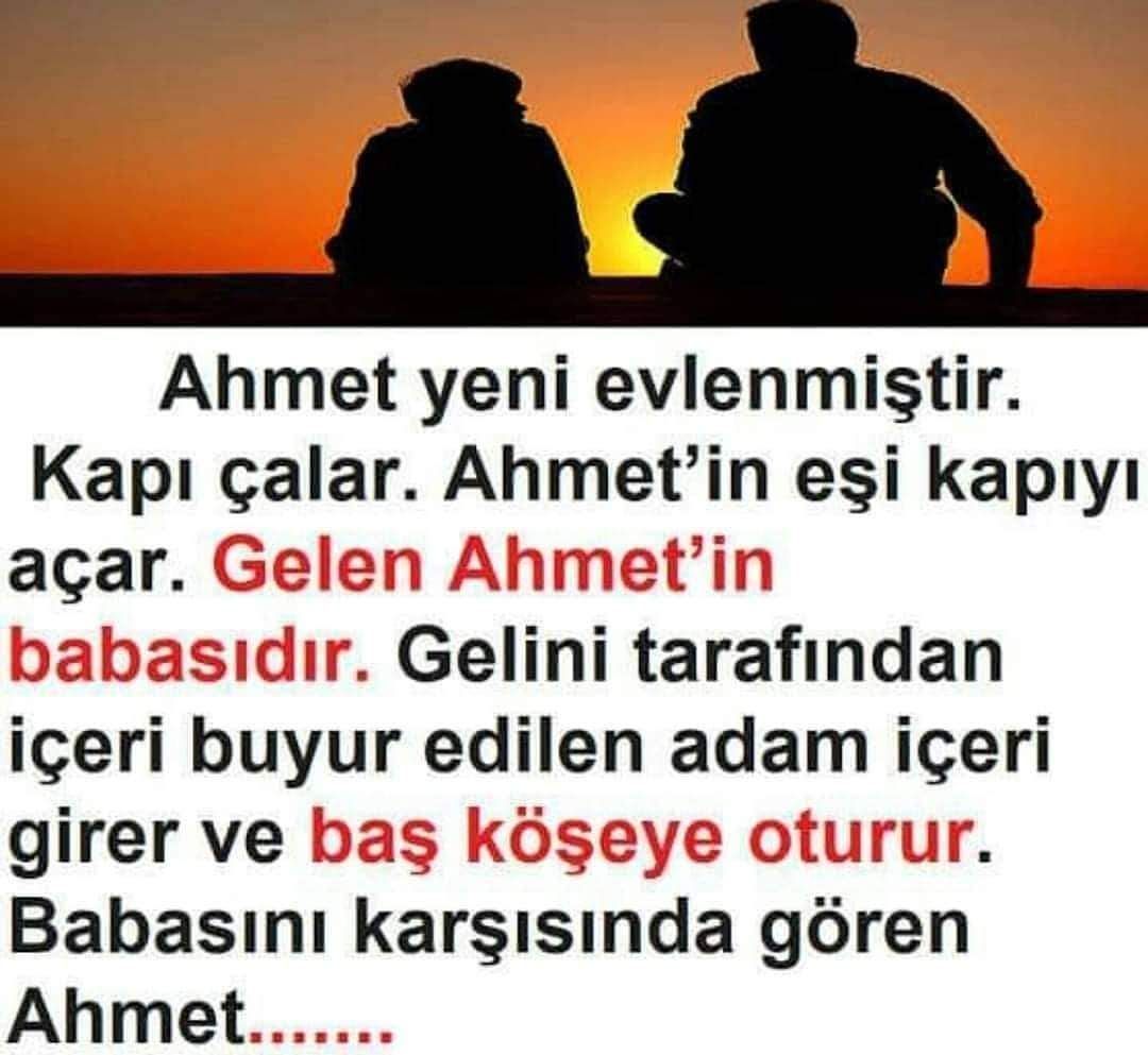 Ahmet yeni evlenmiştir. Kapı çalar. Ahmet’in eşi kapıyı açar. Gelen Ahmet’in babasıdır. Gelini tarafından içeri buyur edilen adam içeri girer ve baş köşeye oturur. Babasını karşısında gören Ahmet, şaşkınlık ve merak karışımı bir bakışla ‘hoş geldin baba’ der. Hoşbulduk oğlum. Oturmadan bana bir beyaz kağıt ile bir silgi getir. Der.