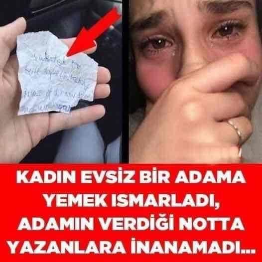 Evsiz Bir Adama Yemek Ismarladı, Adamın Kadına Verdiği Notta Yazanlar yürek dağladı ! Bakın ne yazmış evsiz adam…