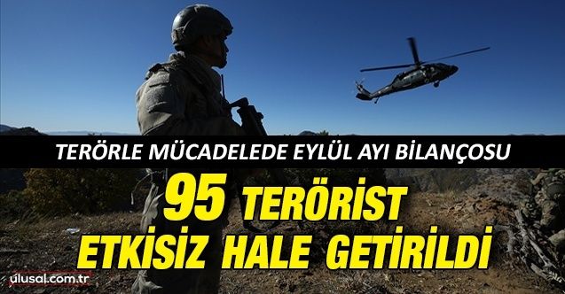 "Eylül ayındaki operasyonlarda aralarında Terör Arananlar Listesi'nde turuncu kategoride 1 ve gri kategoride aranan 4 terörist olmak üzere, toplam 5 sözde üst düzey teröristin de aralarında bulunduğu 26'sı ölü, 54'ü sağ, 14'ü teslim, 1'i yaralı olmak üzere, toplam 95 terörist etkisiz hale getirilmiştir." bilgisini veren Çataklı, etkisiz hale getirilen teröristlerden 69'unun PKK/KCK, 24'ünün DEAŞ, 2'sinin sol terör örgütü mensubu olduğunu belirtti.