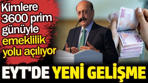 Emeklilikte Yaşa Takılanlar (EYT) için önemli bir gelişme yaşandı. EYT şartlarına göre bazı vatandaşlar 3600 prim günü ile emekli olabilecek.