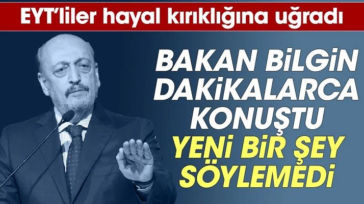 EYT düzenlemesinde yaş sınırı gelip gelmeyeceğine ilişkin belirsizlik sürüyor. Çalışma ve Sosyal Güvenlik Bakanı Bilgin, EYT'de yaş sınırıyla ilgili soruya, "Genel Kurul'daki bütçe görüşmelerinde açıklayacağım" demişti.