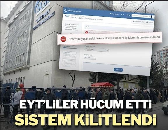 Resmi Gazete 02.00 sıralarında yayımlandı. Aynı anda EYT’liler edevlet’e girmeye başladı. Ve beklenen oldu edevlet’in ilgili sayfası kilitlendi.