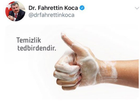 Sosyal medyada koronavirüse karşı sık sık temizlik ve sosyal mesafe kurallarına uyulması gerektiği konusunda paylaşımlar yapan Koca'nın dün yaptığı "Temizlik tedbirdendir" paylaşımı gericilerin tepkisine neden oldu.
