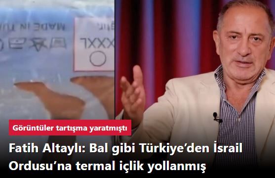 "Birkaç gündür sosyal medyada bir görüntü dolaşıp duruyordu. İsrail askerleri Türkiye menşeli ürünleri paylaşırken görünüyordu. Dolaşan paylaşıma göre, bir konteynerden çıkan ürünler askerlerin soğuktan korunmak için kullandıkları içliklerdi ve yakınlaştırılmış görüntülerde bunların Türkiye’de üretildiği üzerlerinde yazan “Made in Turkey” ibaresinden anlaşılıyordu. Görüntüler iyice yayılıp, İsrail’in Gazze’ye saldırısından bu yana İsrail’e yollanan 500 gemiye ses çıkarmayarak CocaCola dökmekle yetinenleri bile soru sormayı akıl edecek noktaya kadar getirince benim “Dezenformasyon yapılacaksa biz yaparız, size ne oluyor merkezi” dediğim ama resmî adı “Dezenformasyonla Mücadele Merkezi” olan yerden bir açıklama yapıldı. Söylediklerine göre bu görüntüler eski imiş. Çünkü kolilerde “Made in Turkey” yazıyormuş. Oysa 4 Aralık 2021 tarihinden itibaren Cumhurbaşkanı Sayın Recep Tayyip Erdoğan’ın imzasıyla yayınlanan genelgeye göre o tarihten bu yana ihracatı yapılan ürünlerin üzerine Made in Türkiye yazılması şartı getirilmiş. Bu yüzden de “Türkiye’den İsrail Ordusu’na termal içlik gönderildi” iddiası doğru değilmiş.