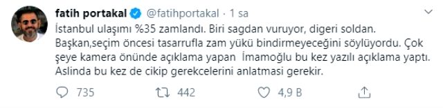 Sosyal medyada büyük yankı uyandıran konuyla ilgili bir çıkış da Fatih Portakal'dan geldi. Paylaşımında İstanbul Büyükşehir Belediye Başkanı Ekrem İmamoğlu'nu eleştiren Portakal,