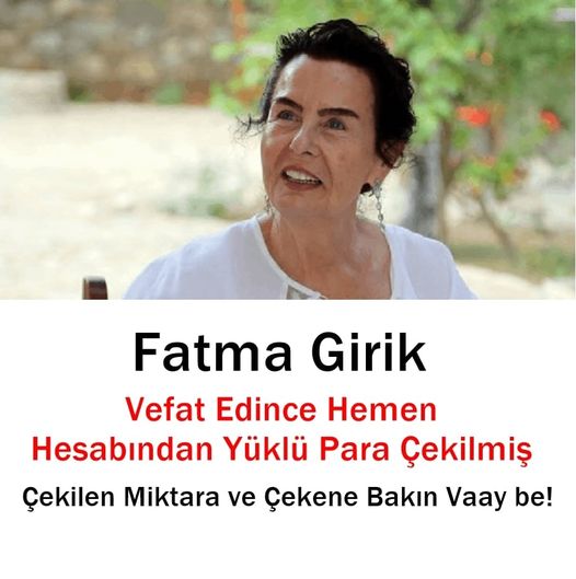 Usta oyuncu Fatma Girik’in kardeşi Günay Girik’ın avukatı Akın Centilmen, Fatma Girik’in ölümünden sonra hesabından 2 milyon lira para çekildiğini belirtti. Girik’in yeğeni Ahu Turanlı’ya dava açacaklarını belirten Günay Girik’in avukatı, “Ayın 31’inde Ahu Hanım İstanbul’a gitmiş. 20192020 yıllarında Fatma Hanım, Ahu Hanım’a hesabının kontrolü için bazı yetkiler vermiş” dedi.