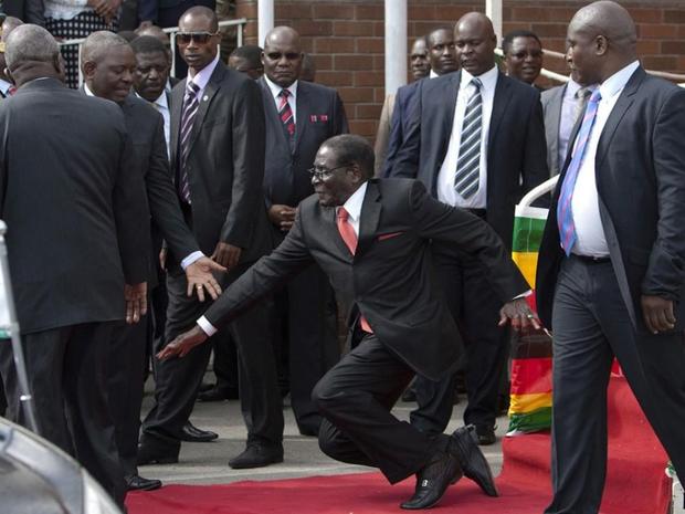 Zimbabveli devlet başkanı Mugabe ece vici vokke yaparken