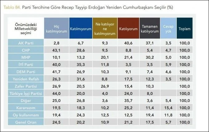 -DEM Parti seçmeninin %69’u sürecin Erdoğan’ın yeniden seçilmesiyle sonuçlanacağını düşünmüyor. AKP seçmeninin %78’i, MHP seçmeninin %52’si buna inanıyor.