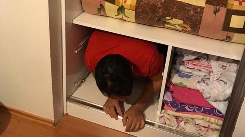 İl Emniyet Müdürlüğü Terörle Mücadele Şubesi ekipleri, FETÖ/PDY ile ilgili yürütülen soruşmalar kapsamında, FETÖ/PDY silahlı terör örgütüne üye olma suçundan aranan kişilerin hücre evlerinde saklandığını tespit etti. Terörle Mücadele Şubesi ekipleri tarafından belirlenen adreslere yapılan baskınlarda, 5 kişi gözaltına alındı. Yakalanan şüphelilerden birinin, yatak odasındaki dolabın içinde, özel olarak yaptırdığı yere saklandığı ortaya çıktı.