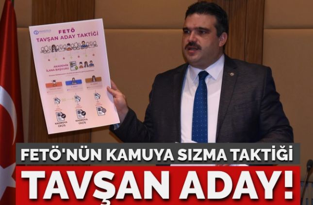 Eskişehir Anadolu Üniversitesi Rektörü Pof. Dr. Şafak Ertan Çomaklı, FETÖ üyelerinin devlete yeniden sızmak için 'tavşan aday' taktiğini kullandığını ve örgütün bu yöntemle bir kuruma yüksek puan alan birden fazla adayın başvurmasını sağlayarak mutlaka kendi adamlarını yerleştirdiklerini söyledi.