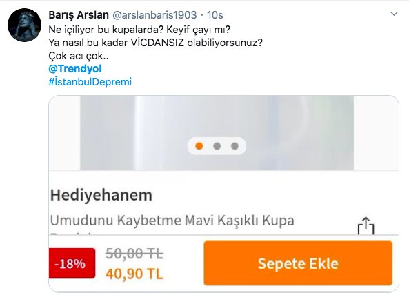 Trendyol'da faaliyet gösteren 'Hediyehanem' isimli bir mağazanın sattığı kupada Elif Perinçek'in itfaiyecinin elini tuttuğu anın fotoğrafının resmedildiğinin görülmesi, sosyal medyada tepkilere neden oldu.