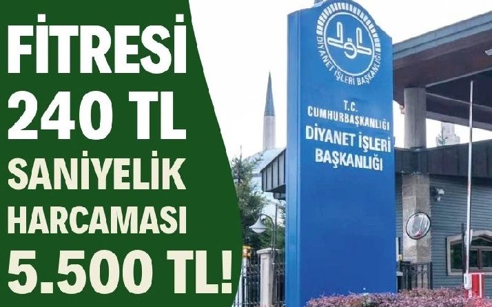 DİYANET İşleri Başkanlığı’nın açıkladığı 240 TL’lik fitre akıllara kurumun harcamalarını getirdi. Diyanet’e verilen kamu bütçesine göre kurum 2026’da saniyede 5 bin 500 TL harcayacak. Diyanet İşleri Başkanlığı Din İşleri Yüksek Kurulu tarafından yapılan açıklamada, Prof. Dr. Abdurrahman Haçkalı başkanlığında yapılan toplantıda 2026 yılı Ramazan ayından 2027 yılı Ramazan ayına kadar olan süre için fitre miktarı 240 TL olarak belirlendi.