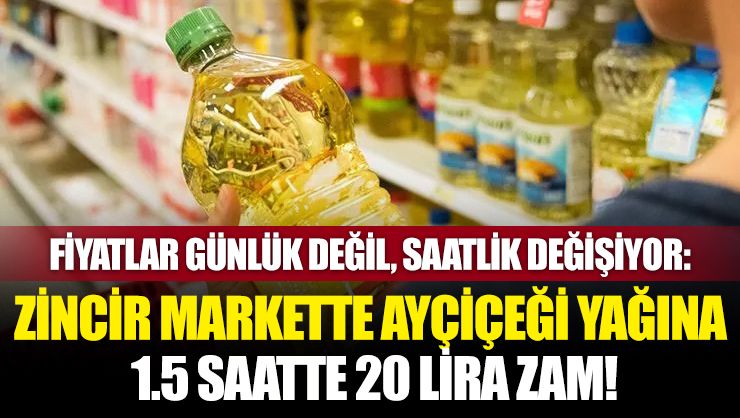Saat 09:30'da 108,95 liraya alınan ayçiçek yağının, saat 11:04'te 128,95 TL'ye satıldığı ortaya çıktı. Bu, bir buçuk saatte 20 lira zam anlamına geliyor.