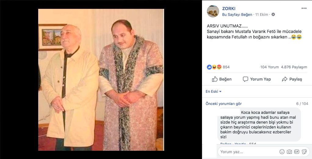Sosyal medyada paylaşılan ve teyit.org’a ihbar olarak gönderilen bir fotoğrafta, Fethullah Gülen’inyanında bulunan kaftanlı kişinin, Sanayi ve Teknoloji Bakanı Mustafa Varank olduğu iddia edildi.