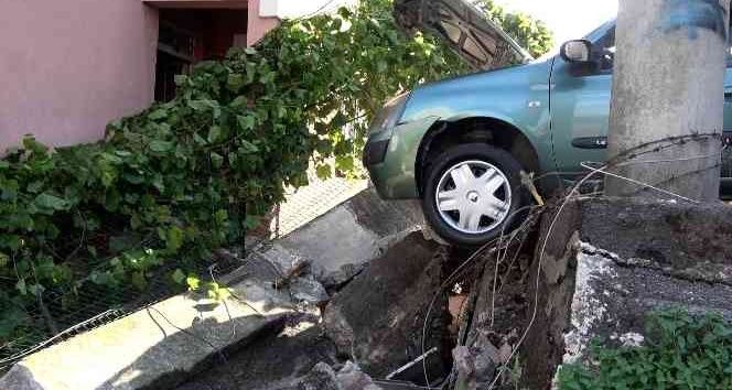 Zonguldak'ın Ereğli ilçesinde sürücü fren yerine gaza basınca otomobil duvara çarparak durabildi.