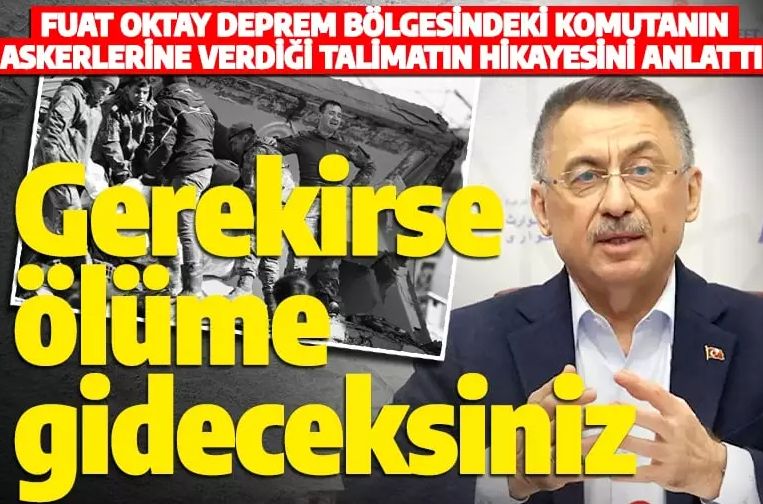 Cumhurbaşkanı Yardımcısı Fuat Oktay, Kahramanmaraş'ta meydana gelen iki büyük deprem sonrası düzenlediği basın toplantısında bir komutanın afetin yaşandığı gün verdiği talimatı anlattı.