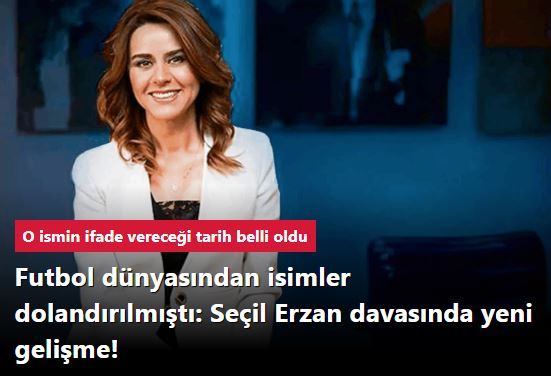 Yüksek kar getirisi bulunan güvenilir bir fon olduğunu ve Fatih Terim gibi isimlerin de bu fona dahil olduğunu söyleyerek aralarında tanınmış futbolcular Arda Turan, Fernando Muslera, Emre Belözoğlu ve Selçuk İnan’ın da bulunduğu 21 kişiyi yaklaşık 25 milyon dolar ile 7 milyon 384 bin lira dolandırdığı iddia edilen Şube Müdürü Seçil Erzan’ın davası sürüyor.