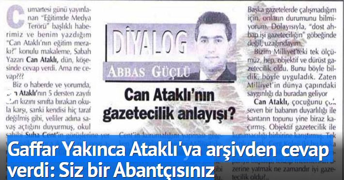 Bunun üzerine Yakınca, Ataklı hakkında arşivlerde yer alan haberleri paylaştı. O haberlerden biri eğitim uzmanı Abbas Güçlü’nün 1995’te, Ataklı’nın, kızına torpil yapmadıkları için okul yöneticilerini tehdit ettiğini, medya üzerinden savaş açtığını belirttiği yazı oldu.