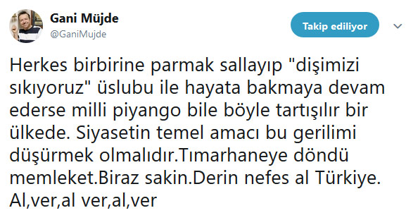 Ünlü Senarist ve Yönetmen Gani Müjde, “dişimizi sıkıyoruz” diyerek Fatih Portakal’ı tehdit eden AKP’lilere çok sert yanıt verdi.