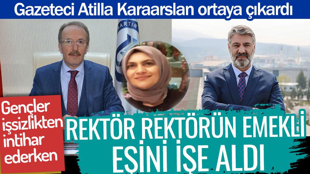 Gazeteci Atilla Karaarslan, Bartın Üniversitesi'nin rektörünün eşinin Karabük Üniversitesi rektörü tarafından işe alınmasını ortaya çıkardı.