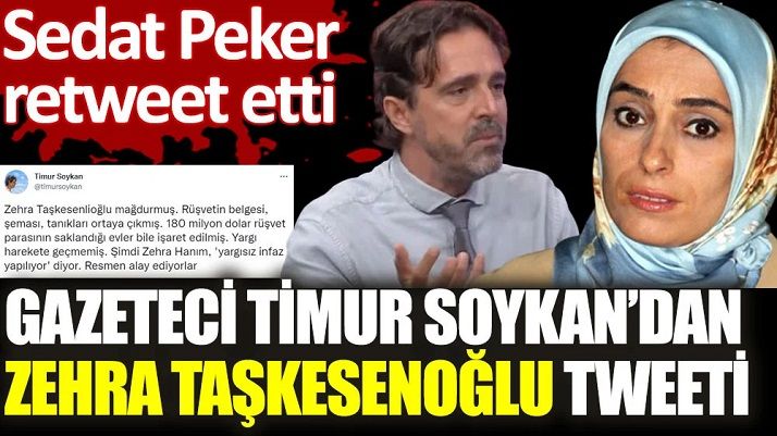 Sosyal medya hesabından paylaşım yapan Timur Soykan mesajında; “Zehra Taşkesenlioğlu mağdurmuş. Rüşvetin belgesi, şeması, tanıkları ortaya çıkmış. 180 milyon dolar rüşvet parasının saklandığı evler bile işaret edilmiş. Yargı harekete geçmemiş. Şimdi Zehra Hanım, 'yargısız infaz yapılıyor' diyor. Resmen alay ediyorlar” ifadelerini kullandı.