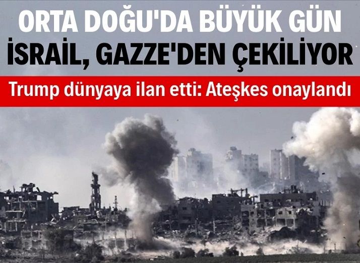 ABD Başkanı Donald Trump, İsrail ile Hamas'ın, Gazze'de ateşkes planının ilk aşamasını onayladığını, bu anlaşmayla birlikte tüm İsrailli esirlerin serbest bırakılacağını ve İsrail'in daha önce belirlenen hatta geri çekileceğini belirtti.