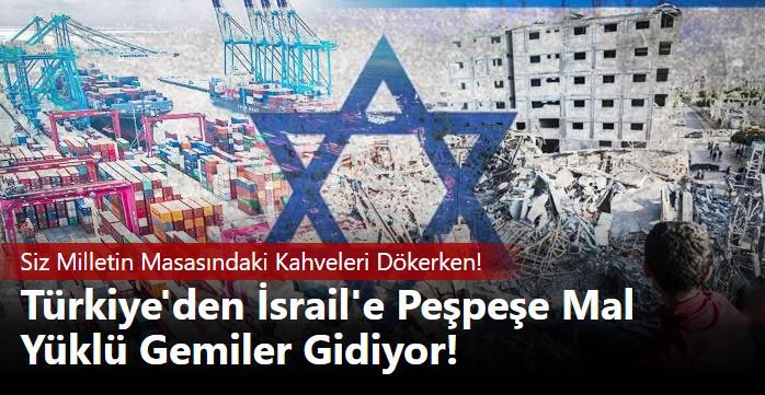 Cumhurbaşkanı Recep Tayyip Erdoğan, İsrail'e karşı tepkisini sözlerle dile getirse de Gazeteci Metin Cihan'ın paylaşımına göre İsrail ile ticaret tüm hızıyla devam ediyor. Cihan, dünya çapında gemi trafiğine yer veren Marinetraffic'te kayıtlı veriler doğrultusunda, Türkiye'den İsrail'e malzeme taşıyan gemileri listeledi.