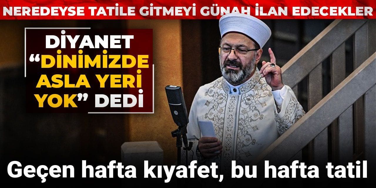 8 Ağustos Cuma hutbesinde ise Diyanet’in yeni hedefi "tatil anlayışı" oldu. "Tatil" kavramı, Müslüman için yalnızca dinlenme değil, “kulluk ve sorumluluk bilinciyle” geçirilmesi gereken bir süreç olarak tarif edildi. Helal-haram sınırlarının gözetilmediği, “lüks ve israfın zirveye çıktığı” bazı tatil biçimleri “nefsani arzuların hâkim olduğu” gerekçesiyle eleştirildi.
