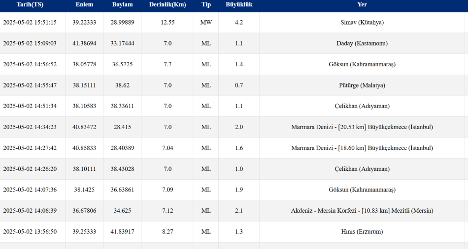 AFAD'dan aktarılan bilgiye göre deprem 12.55 km derinlikte gerçekleşti.