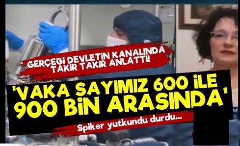 TRT ekranlarında yayınlanan “Soru Cevap” programında açıklamalarda bulunan Dr. Meltem Özen, Türkiye'de korona virüs vaka sayısının 600 ila 900 bin arasında olduğunu belirtti. Dr. Özen’in sözlerinin ardından TRT spikeri yutkunup durdu.