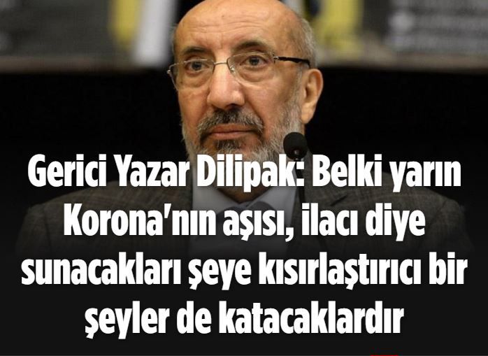 "Belki yarın Korona'nın aşısı, ilacı diye sunacakları şeye kısırlaştırıcı bir şeyler de katacaklardır" iddiasında bulunan Dilipak, şöyle devam etti: