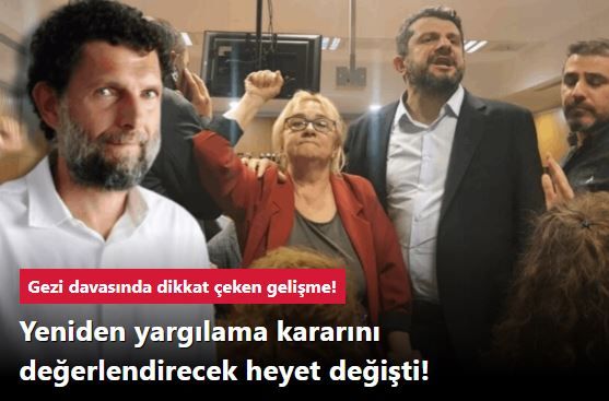 "Bu talebe göre 13. Ağır Ceza Mahkemesi üyelerinden Mesut Özdemir ve Murat Bircan'ın Gezi Davası'nda karar veren heyette yer aldıkları görülerek heyet yenilendi. Buna göre, Osman Kavala'nın avukatının yeniden yargılama talebine bakmak üzere 24. Ağır Ceza Mahkemesi Başkanı Şenol Kartal başkan olarak görevlendirildi. Ayrıca 13. Ağır Ceza Mahkemesi'nde yer alıp o karar duruşmasına girmeyen hakimlerden Mücahit Kemal Yamak ve Enes Budak ise üye hakim olarak görevlendirildi ve yeni bir heyet oluşturuldu."