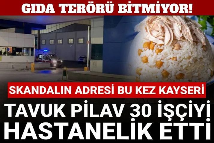 Gıda zehirlenmesi olaylarında, son zamanlarda yaşanan artış dikkat çekerken son olay, Kayseri’de meydana geldi. Melikgazi ilçesine bağlı Mimarsinan Organize 19. Cadde'de bulunan Erciyes Çelik Halat Fabrikası'nda yaşanan olayda, akşam yemeğinde tavuk pilav yiyen işçilerde bulantı ve kusma şikayetleri başladı.