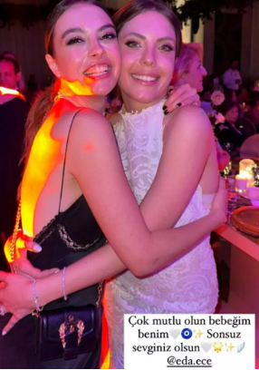 Melis Sezen de Eda Ece ile fotoğrafında "Çok mutlu olun benim bebeğim. Sonsuz sevginiz olsun" ifadelerini kullandı.