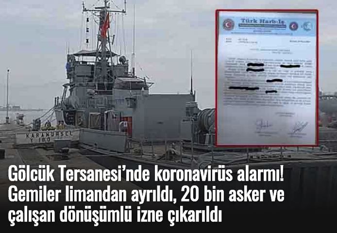 Yaklaşık 20 bin Asker memur ve işçinin çalıştığı Gölcük Tersanesi’nde askeri personelin yarısı 14 günlük iki vardiya şeklinde izne çıkarıldı.