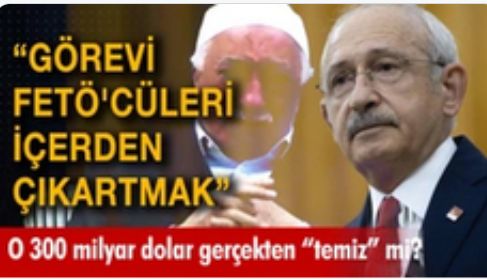 Vatan Partisi Genel Başkan Yardımcısı Hakan Topkurulu, Kemal Kılıçdaroğlu'nu 300 milyar dolar temiz para çıkışı konusunda topa tuttu. Topkurulu "Ne dediğini bilmiyor. Ona verilen görev FETÖ'cülerin içerden çıkartılması, PKK'nın önünün açılması.'300 milyar temiz yatırım' diye saçmalıyor. Bu komediyi yiyor insanlarımız. Çok acı bir şey." ifadelerini kullandı.