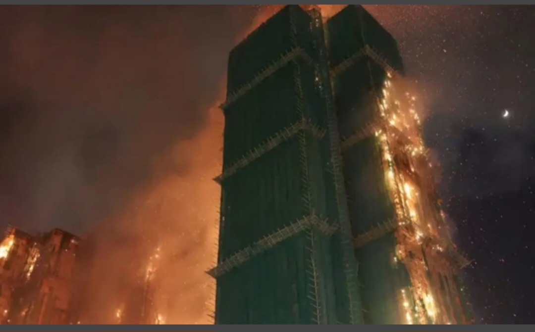 İtfaiye ekiplerinin yangına müdahalesi sürerken, olay yerinden gelen görüntüler yangının vahametini ortaya koydu. Görüntülerde, itfaiye ekiplerinin, dış cephesi bambu iskelesiyle kaplı olan ve alevler içinde kalan dairelere müdahale ettiği görüldü.